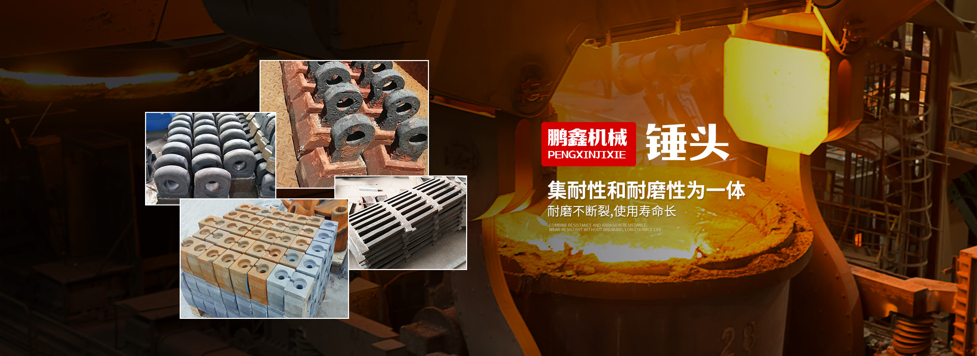 鞏義市鵬鑫鑄造有限公司主要生產制砂機錘頭、高鉻錘頭、高錳鋼錘頭、襯板、鄂板、鑄造板錘、高鉻板錘、破碎機板錘、反擊破板錘、球磨機襯板、顎式破碎機鄂板(牙板、齒板),邊護板(叉板)、肘板、對輥破碎機(雙輥破碎機)輥皮、輥殼、雷蒙磨配件(磨輥磨環(huán))等礦山配件,還可根據(jù)客戶需要定制各種耐磨鑄件、鑄鋼件、灰鐵鑄件、生鐵鑄件,歡迎來電來函咨詢!